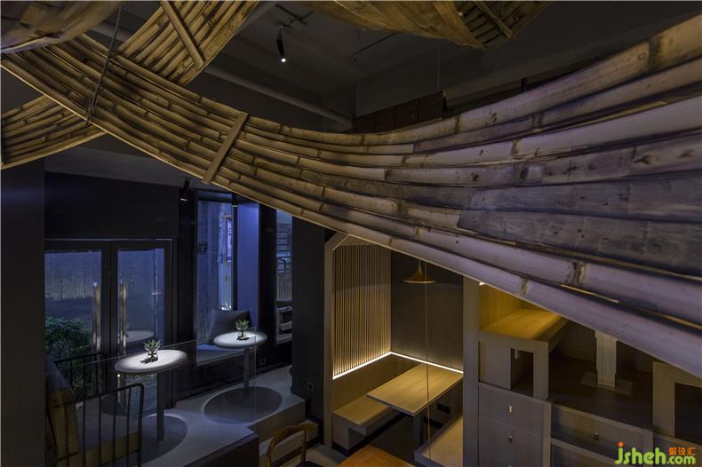 With environmental protection, natural, low-carbon material purpose to build space, which extensive use of bamboo elements of the original building cement wall, so that the combination of nature and industry to release a balance and modern elements, to create a quiet Zen tea house , The use of narrow light, so that space is more a mysterious and quiet. There are bamboo, accompanied by tea, the perception of tea and the dialogue between people, ironing posts city noise, the digestion of people's anxiety and fatigue.