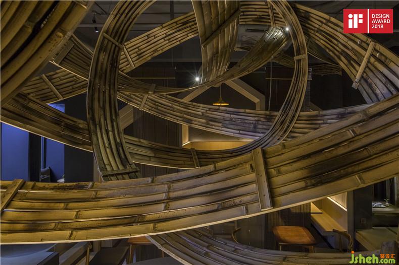 Whether it is the line of the people in the dragon dance, or the natural texture that the landscape presents, there is a kind of flowing beauty. The designer USES it in the construction of smallpox, and USES bamboo pieces to create the flow of flowing water, which has a static and dynamic trend. Frenzy as Chinese cursive script, with beautiful, this unconventional structure, not only bring entertainment flow between natural rhythm, deepen the high quality of the space, also make the line of sight to harvest unexpected surprises.