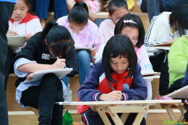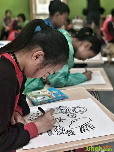 經(jīng)過支教老師的講解和其他幾位老師的同臺傾授以及嘉賓們的輔導(dǎo)創(chuàng)作,一小時(shí)后,孩子們的萬千海洋世界的美術(shù)作品就誕生了!現(xiàn)場還有學(xué)生家長也跟著認(rèn)真描摹起來。