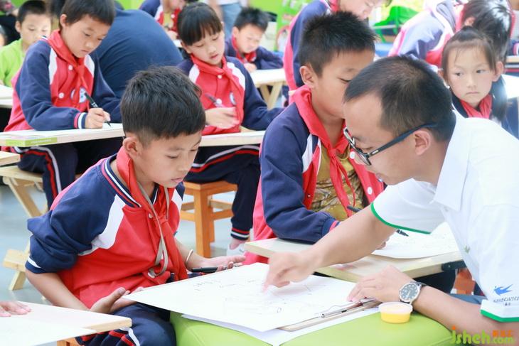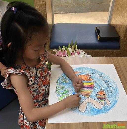 第二堂課的創(chuàng)作主題是“夢幻海洋”,支教老師李凌鼓勵(lì)孩子們放飛想象,描繪他們眼中的大海,培養(yǎng)孩子們愛護(hù)海洋,保護(hù)動(dòng)物的觀念。