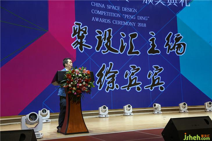 △中國空間設(shè)計大賽“鵬鼎獎”執(zhí)行主席、聚設(shè)匯創(chuàng)始人兼主編徐賓賓上臺致辭。