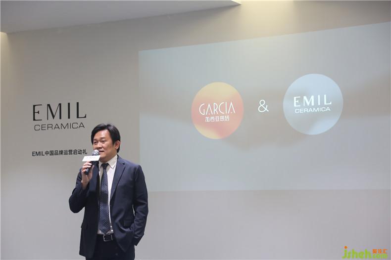 EMIL瓷磚全球總裁Sergio Sassi為大家介紹了EMIL與美國莫和克集團及加西亞瓷磚的相識與合作,也表示了對加西亞瓷磚代理意大利EMIL埃米品牌的中國運用充滿了信心。