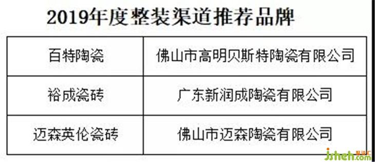 2019年度整裝渠道推薦品牌