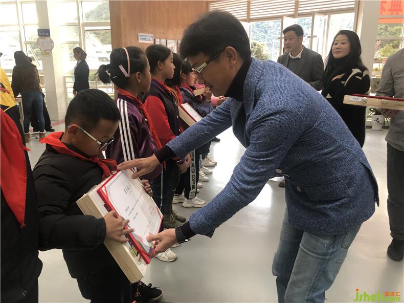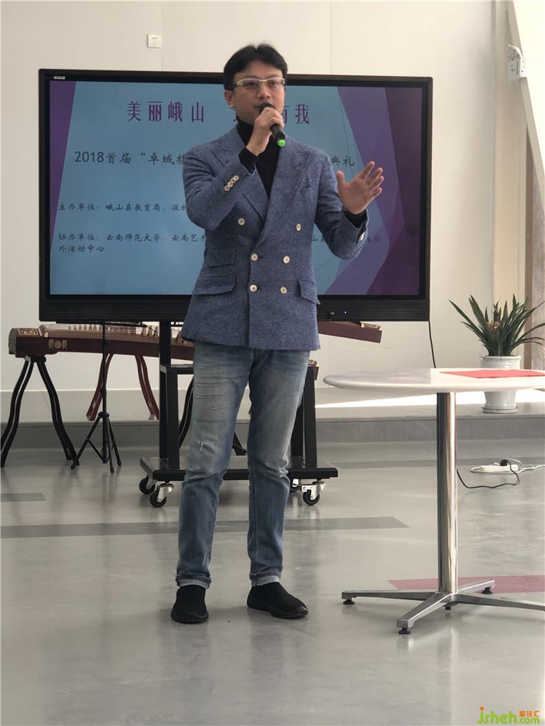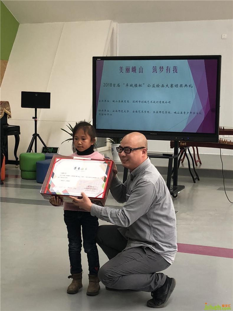 頒獎(jiǎng)典禮上,峨山縣教育局張文達(dá)局長(zhǎng),深圳市創(chuàng)域藝術(shù)設(shè)計(jì)有限公司董事長(zhǎng)、藝術(shù)總監(jiān)殷艷明先生以及云南藝術(shù)學(xué)院設(shè)計(jì)學(xué)院環(huán)境設(shè)計(jì)系系主任、副教授楊春鎖老師、云南師范大學(xué)美術(shù)學(xué)院副教授、副院長(zhǎng)何浩老師、云南玉溪師范學(xué)院美術(shù)學(xué)院院長(zhǎng)郭巍老師、副院長(zhǎng)趙芳老師以及李抒然老師、上海集積號(hào)電子商務(wù)有限公司首席運(yùn)營(yíng)官卜霓虹女士以及峨山縣青少年學(xué)生校外活動(dòng)中心普志剛老師悉數(shù)出席。