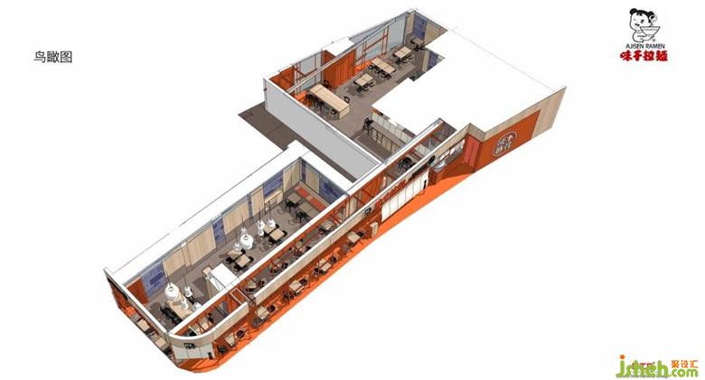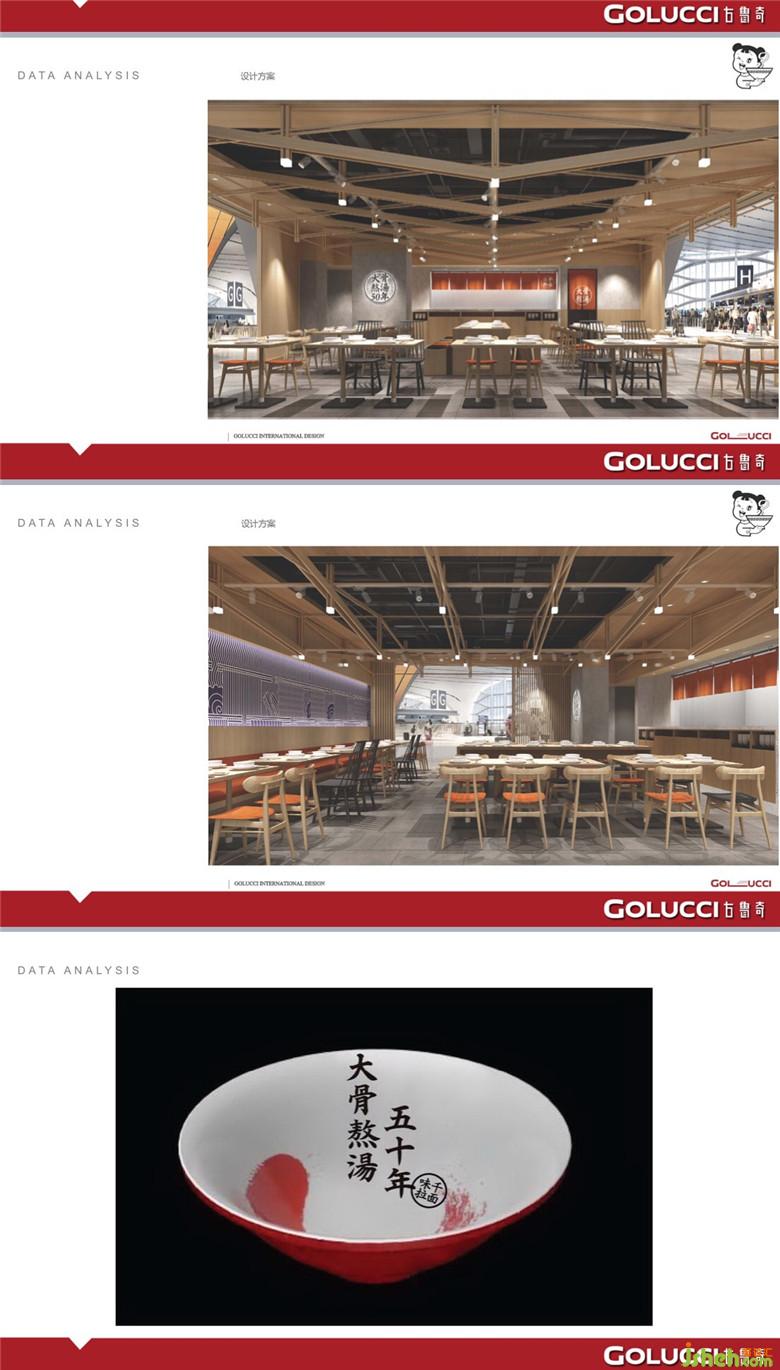 利旭恒老師的餐飲案例大多都會(huì)確定一個(gè)主題,再開展設(shè)計(jì)的后續(xù)工作。在味千拉面的主題設(shè)定上,利老師從核心價(jià)值出發(fā),圍繞專業(yè)、經(jīng)典和健康三大板塊做設(shè)計(jì),基本概念是透過日本鳥居的手法,抽象的將餐廳空間打造成日本住宅的室內(nèi)與室外走廊關(guān)系。并將夾起拉面效果二維化的手法融入到餐廳空間當(dāng)中,保留日本名店、50年老湯、大骨熬湯,鮮美健康。并且從客戶群體的角度去思考“什么人喜歡吃一碗地道好湯的日本拉面”,注重對(duì)品質(zhì)的高要求、熱愛日本文化、健康養(yǎng)生等,打造一個(gè)溫暖、輕松、富有文化韻味、精致的面館??吹竭@些健康,既符合餐飲品牌的形象,也迎合現(xiàn)代客戶的口味。
