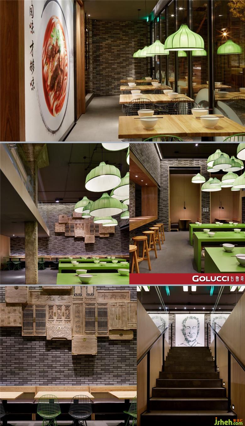 而李先生的核心價(jià)值主題是從專業(yè)、經(jīng)典、健康的牛肉面大王出發(fā)。再次用顧客群的角度去思考,得出年輕人愛吃牛肉,他們熱愛健身、認(rèn)為牛肉是有力量的、崇尚健康,他們喜歡陽光、活潑等,這些都是產(chǎn)品的定位。設(shè)計(jì)方面李先生案例的采用雨棚造型的門頭,底面可以是燈箱,更加洗亮外立面。餐廳設(shè)計(jì)空間上借鑒了的美國的漢堡店布局,裝飾面材料又充滿了中國語匯,期待透過這種碰撞給顧客提供獨(dú)特有趣的用餐體驗(yàn)。而卡座背后的墻面,利老師將木飾面高度提高,裝飾畫高度減少,加上黑色的金屬框產(chǎn)生一個(gè)細(xì)長的窗口,窗外是一望無際的抽象牧場(chǎng)草原。同時(shí),灰綠色的畫面與芋之遇的綠色相互呼應(yīng),整個(gè)空間更加協(xié)調(diào)統(tǒng)一。