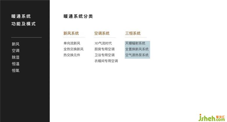 張老師表示要注重家的通風(fēng)系統(tǒng)設(shè)置,打造一個(gè)健康的家才會(huì)越住越舒服。如設(shè)置新風(fēng)系統(tǒng),強(qiáng)制排風(fēng),自然送風(fēng)。排風(fēng)口安裝在廚房和衛(wèi)生間排風(fēng)口直接與衛(wèi)生間的豎井或是廚房的煙道連接,導(dǎo)入新風(fēng)的進(jìn)風(fēng)口安裝在臥室、客廳的門(mén)窗上方,并直接連接戶(hù)外。全熱交換新風(fēng),利用交換排風(fēng)熱量(冷量),來(lái)降低室內(nèi)冷熱負(fù)荷。排除室內(nèi)污染空氣,引進(jìn)室外清新空氣。利用熱交換功能大大降低了能耗,節(jié)能環(huán)保。廚房也要配備專(zhuān)用的廚房空調(diào),讓在廚房準(zhǔn)備美味菜肴的爸爸媽媽也能享受到舒服的溫度。三恒系統(tǒng),如空氣源熱泵,節(jié)能環(huán)保,利用可再生能源。