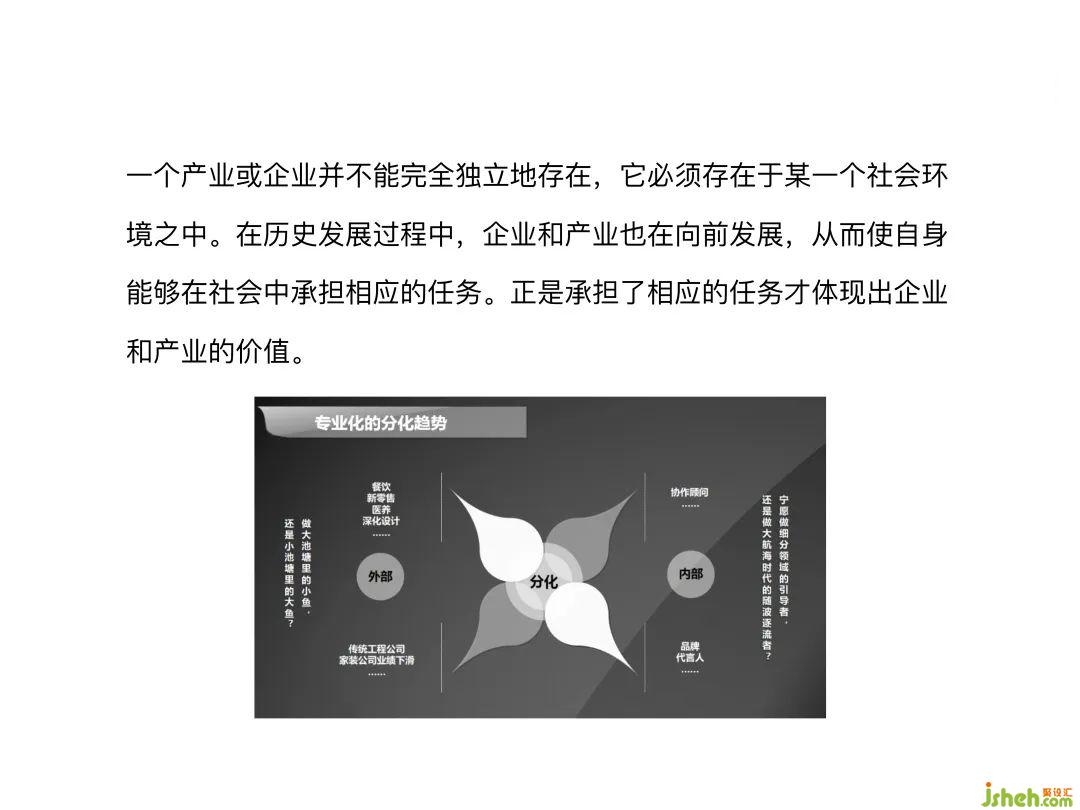 專業(yè)分工與專業(yè)分化,很多設(shè)計(jì)師是有一些誤區(qū)的,都是為了細(xì)分而去細(xì)分。但實(shí)際上這個(gè)細(xì)分的背后是為了客戶效能的提升,因?yàn)榭蛻粜艿奶嵘糯偈刮覀冏兊糜袃r(jià)值,而不是很多設(shè)計(jì)師天然的給自己貼一個(gè)標(biāo)簽,說(shuō)我只做某一個(gè)細(xì)分領(lǐng)域。