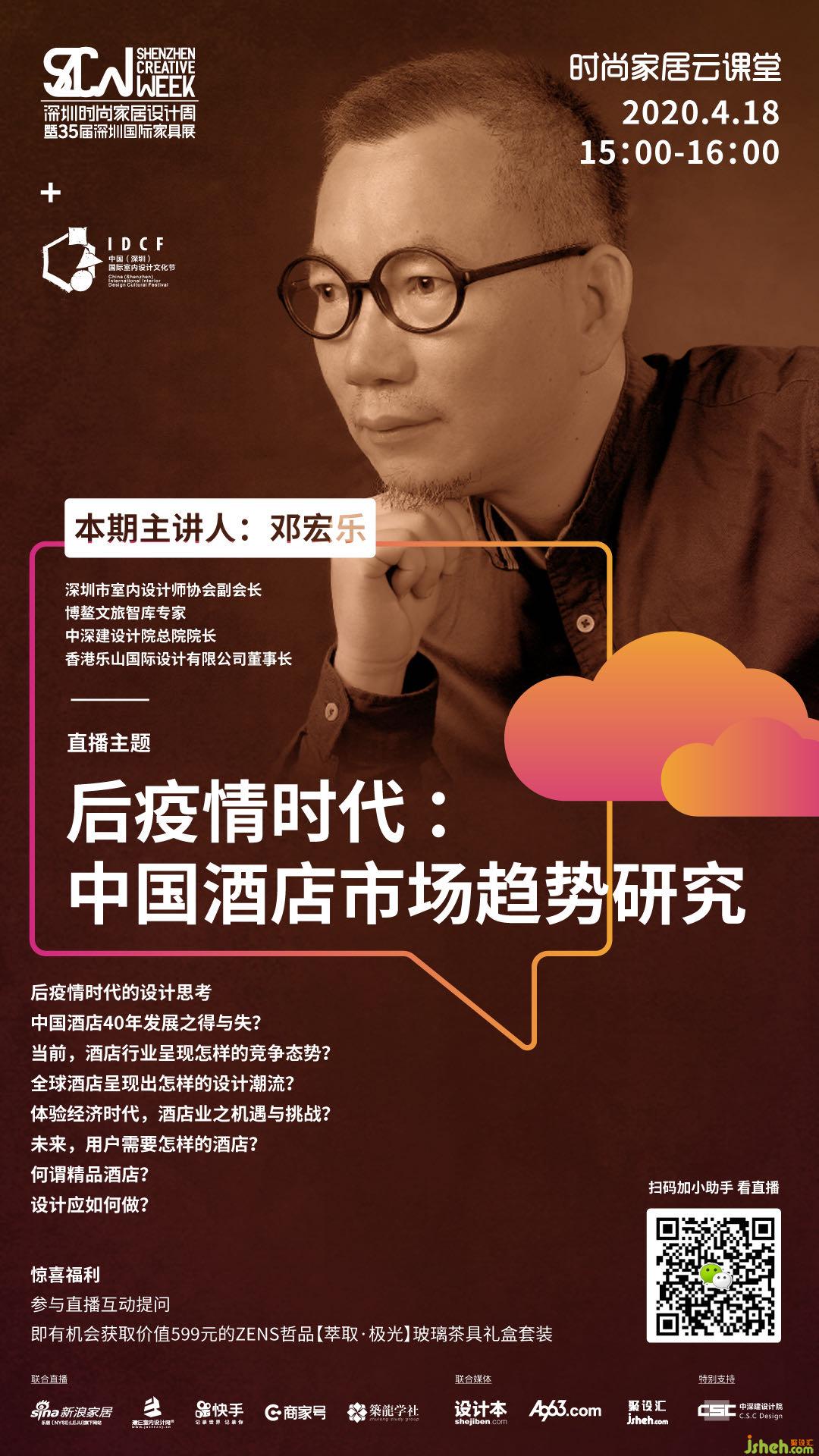 4月18日下午15點(diǎn),受「深圳時(shí)尚家居設(shè)計(jì)周」邀請(qǐng),鄧宏樂先生將空降“時(shí)尚家居云課堂”,展開他的直播首秀。酒店業(yè)是受疫情沖擊的重災(zāi)區(qū),作為從業(yè)近30載的資深酒店專家,他將首度暢談后疫情時(shí)代之下,設(shè)計(jì)師的觀察與思考。干貨滿滿,敬請(qǐng)期待。