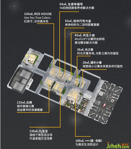 從29㎡的極小戶型,到180㎡的超大住宅空間,“未來(lái)社區(qū)成果展”中規(guī)劃了9個(gè)不同的戶型,而這不同的戶型空間又被9個(gè)設(shè)計(jì)機(jī)構(gòu)賦予不同的生活場(chǎng)景和生活形態(tài),能輕松住下2夫妻+2小孩+1只貓的29㎡漫樂(lè)小屋、有老有小但無(wú)擁擠感的36㎡光之寓、能解決全齡段居住需求的40㎡共生小居、單親媽媽與二孩獨(dú)立又沒(méi)距離感的50㎡倍濃巧克力盒、解決50后抱團(tuán)居家養(yǎng)老問(wèn)題的68㎡五感幸福宅、既顯個(gè)性又具科技感的100㎡RED HOUSE、代表城市高端公寓新空間的115㎡云棲、家庭交互場(chǎng)景新模式的130㎡O2生活、改善型高配戶型的180㎡ +∞(家·無(wú)限)。