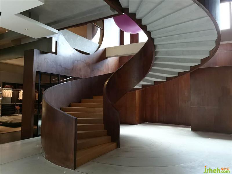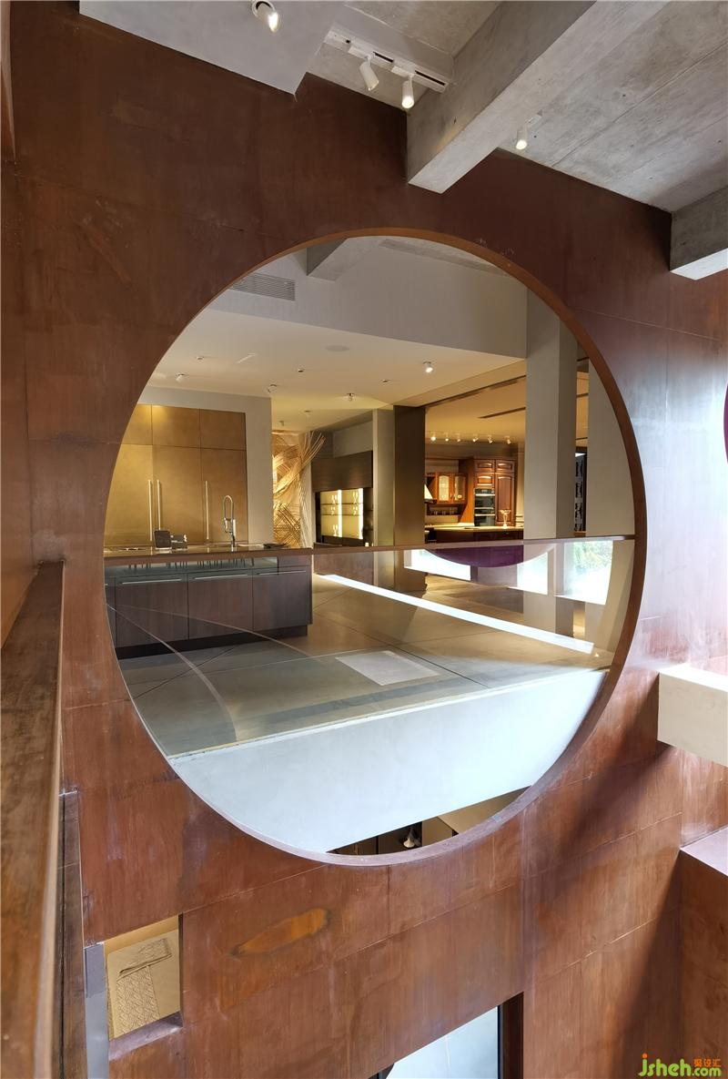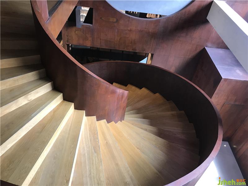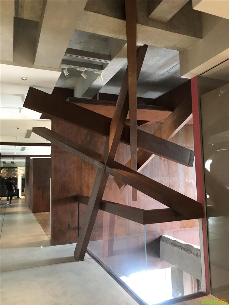 建筑的外墻改造,延續(xù)原有建筑結(jié)構(gòu)的力量與節(jié)奏感,選用耐候鋼板自然形成的銹紋和無縫拼接的工藝,鑄造成一個獨特的建筑雕塑體,從室外延伸到室內(nèi)構(gòu)架成整體的空間。