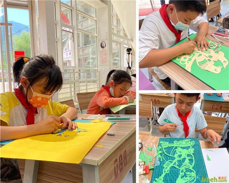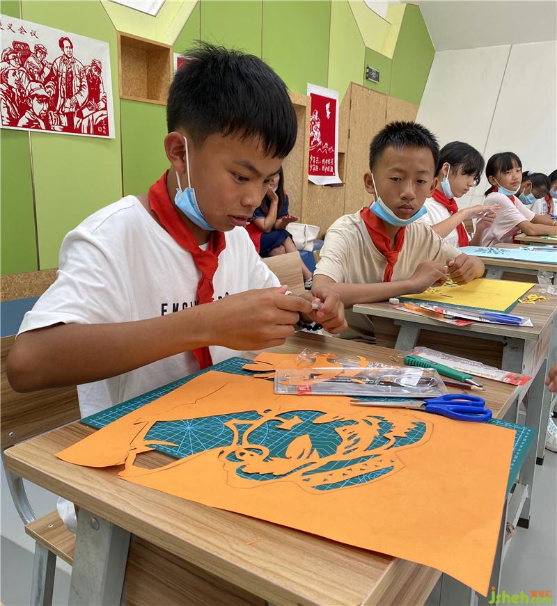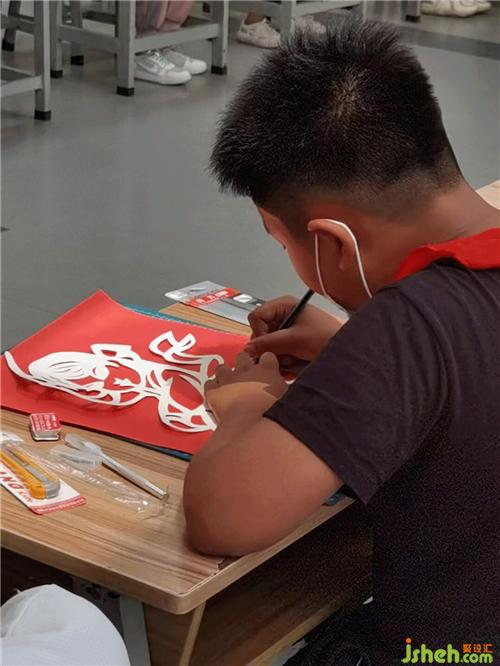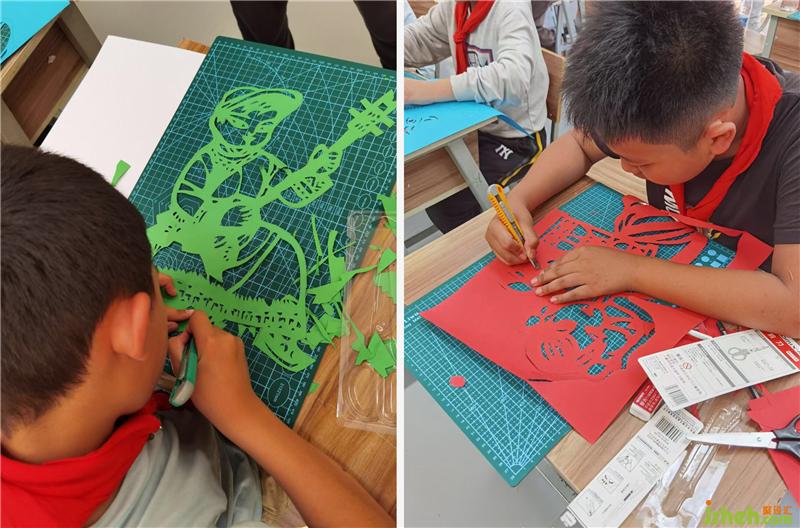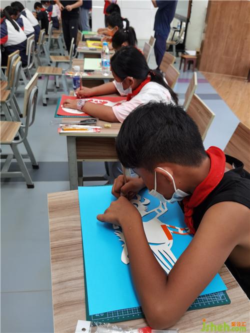 孩子們認(rèn)真學(xué)習(xí)剪紙操作