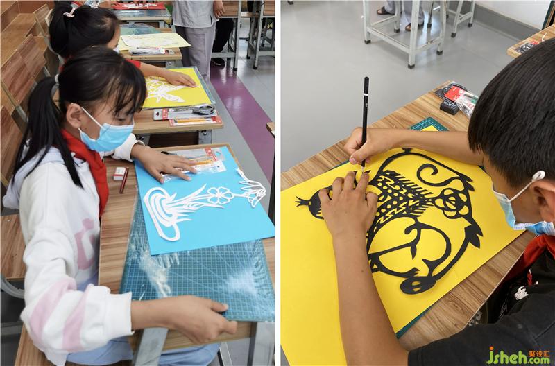 高爾夫球隊(duì)的設(shè)計(jì)師們,這一群特別的“大孩子”也在現(xiàn)場(chǎng)與孩子們積極互動(dòng),無(wú)論是剪裁過(guò)程的輔導(dǎo)還是團(tuán)結(jié)協(xié)作的創(chuàng)作,大腦與指尖的碰撞,激蕩出奇妙的藝術(shù)火花,美學(xué)教育的引導(dǎo)作用也正在于此。