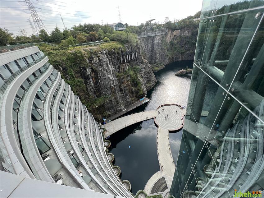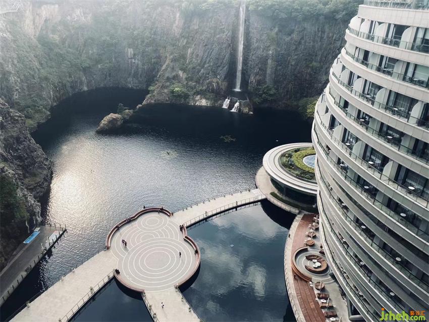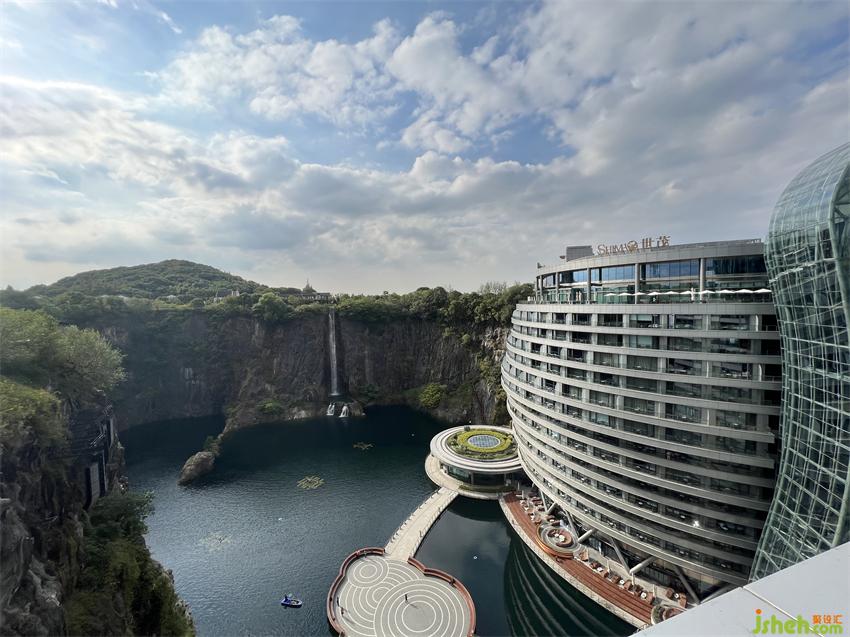上海佘山世茂洲際酒店(又名“世茂深坑酒店”)建造于原本為采石礦的深坑之上,為了將原始深坑的粗糲質(zhì)感和周圍自然環(huán)境相融合,酒店室內(nèi)采取“礦意美學(xué)”的理念進行設(shè)計,將原生粗獷的巖石崖壁與縹緲雅致的山水自然相結(jié)合,打造出專屬于世茂深坑酒店的意境文化。