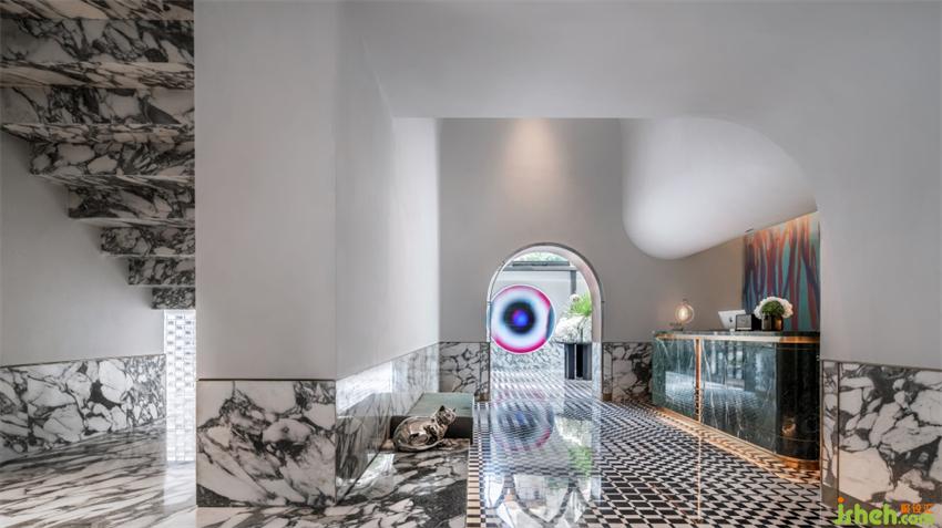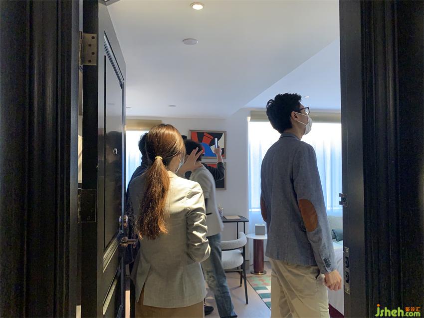 設計師黃全以Art Deco風格重新演繹百年公寓的風采,修繕與改建了這座黑石M+酒店,融入這個被藝術深深浸潤的街區(qū)。因為設計師人數(shù)過多,我們分三批逐步參觀,在黑石這片新潮里,我們領略老上海的歷史魅力與設計的非凡格調(diào),享受多種材質(zhì)碰撞地視覺沖擊。