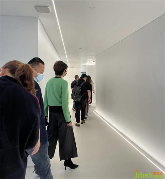 上午,我們來到共生形態(tài)公司進(jìn)行參觀,一進(jìn)入公司,映入眼前的是左右兩面白、上下為黑的色彩搭配。通往公共辦公區(qū)的走廊同樣也是延用大片的白色,而辦公區(qū)和會議室則采用黑色的主色調(diào),簡單的黑白搭配,對線條的把控,無需過多的修飾,即可呈現(xiàn)出空間的立體感,科技感十足。