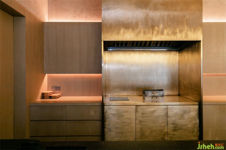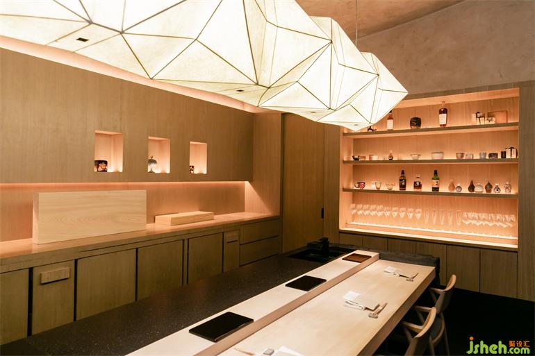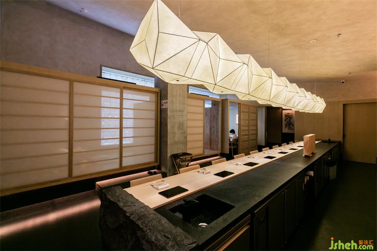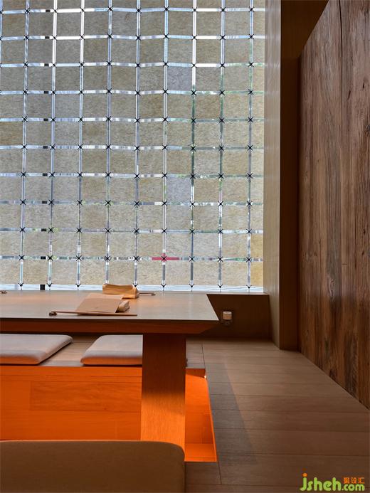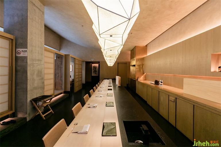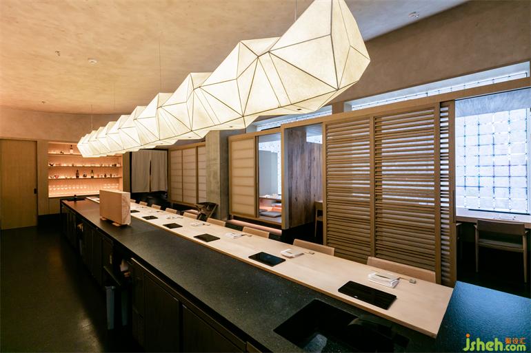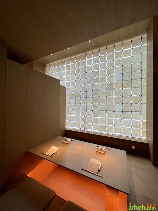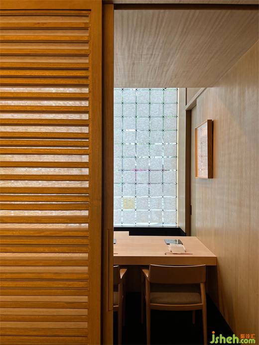 餐廳位于深圳中心 · 天元,福華一路。解構(gòu)植庭壽司外立面,僅一塊一掌見寬的木門,古樸厚重。門上有一個方口貓眼,一個端坐著的小瑞獸,像古人門口看家的石制神獸的mini版。植庭餐廳門板這一木色在福田卓越商業(yè)中心顯得樸實純粹,毫無商業(yè)氣息,卻莊重肅穆令人不敢輕視。