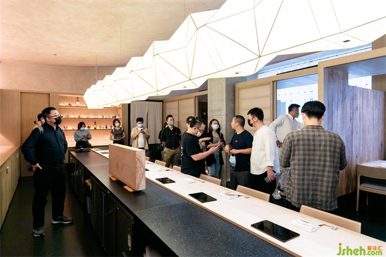 餐廳的用餐環(huán)境涵蓋水磨石,檜木,船只,銅紙。建筑師們?cè)趯?duì)空間設(shè)計(jì)做考量的時(shí)候,既要從功能性出發(fā)考慮到每一種材料的物理屬性,還要兼顧到所有材料背后的精神指向,置于一個(gè)空間內(nèi)在達(dá)到和諧,然后在各自的位置上發(fā)揮著作用,投射出屬于自己的那一道光。
