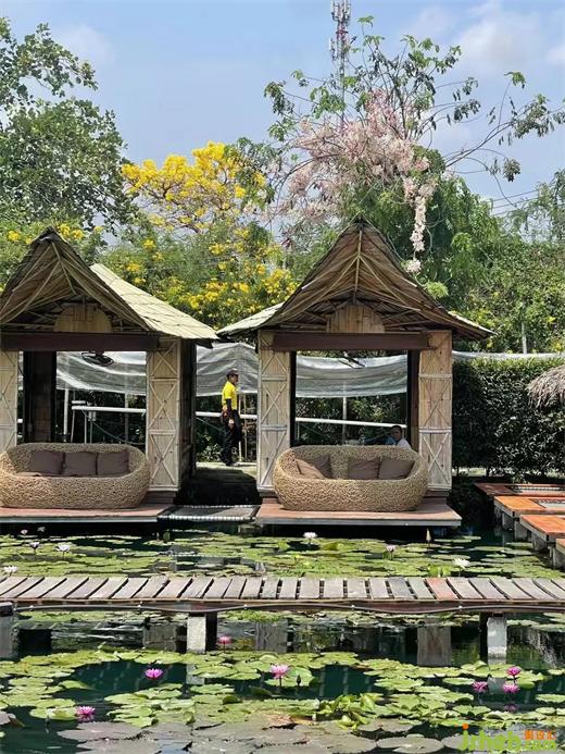 “森林中的泡泡”Bubble In The Forest是一家位于泰國佛統(tǒng)府的咖啡館,由Thai Garden Design事務(wù)所設(shè)計(jì),其作品以泰式園林、熱帶風(fēng)情見長。這間“水上咖啡廳”的設(shè)計(jì)亦承襲泰式景觀風(fēng)格,Bubble In The Forest自稱“迷你版馬爾代夫”,除了有著不遜于馬爾代夫的碧水藍(lán)天外,咖啡館的設(shè)計(jì)同樣借鑒了馬爾代夫的水上漂浮房屋,打造了一座漂浮在水上的咖啡館。
