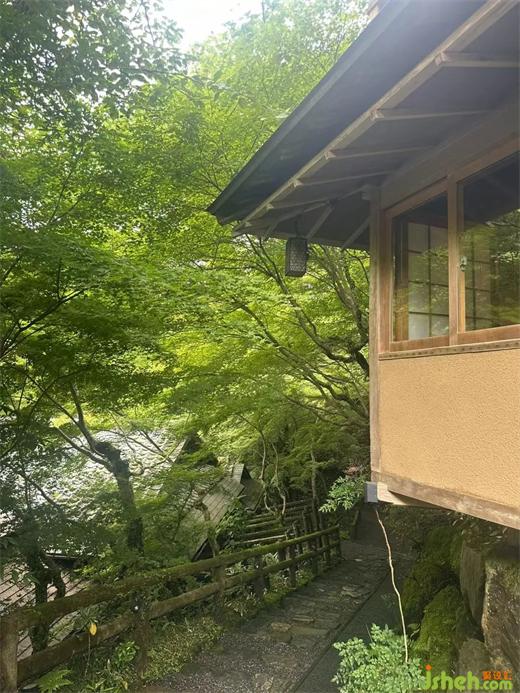虹夕諾雅京都有專屬的碼頭,住客需先乘船、再步行一小段山路,才能抵達(dá)酒店。這樣的入場,可謂是儀式感滿滿。 河流作為曾經(jīng)山里運(yùn)送糧食,人們交通移動(dòng)的通道,如今也是旅人追尋京都過往記憶的途徑。前往酒店的路途雖然僅有15分鐘,卻是比平時(shí)感受更為濃密的15分鐘。映入眼簾的,除了山還是山。河畔的虹夕諾雅京都,建造在景觀保護(hù)區(qū)當(dāng)中。但日本庭園的美麗,是在人工和自然的境界邊上蕩漾的。映射了人的審美意識的自然,就如同在清掃過的通道上,那引路般零零落落殘留著的杜鵑花瓣。