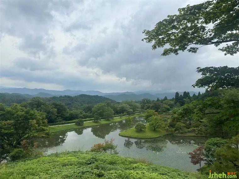 綜觀修學院離宮,遠離市塵卻可遙望街市,離而不隔,若即若離。本為山地,曲水瀑布最宜,卻強為廣大水池,堆土島構橋梁,工程浩大。但堤下以植籬掩蓋,堤上寬堤如浜,顯得親切自然。最妙處為借景,在鄰云亭、千歲橋、西浜各處都可借到山下、市區(qū)和遠山的景觀。