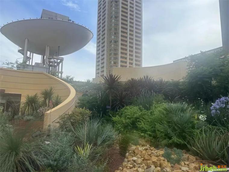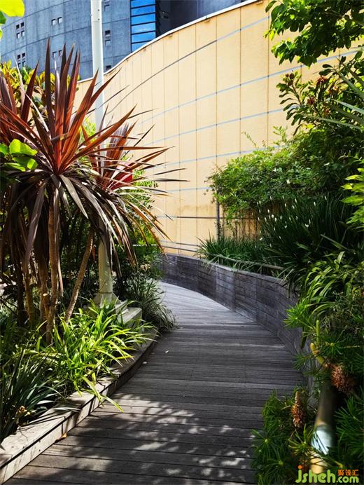 難波公園彰顯了一種自然生態(tài)的生活方式,空中花園、屋頂綠樹(shù),公園直接跟大街相連,為鋼筋混凝土林立的城市里帶來(lái)了一股清新的氣息。人們可以欣賞成群的大樹(shù)、巖石、懸崖、草坪、溪流、瀑布池塘及露臺(tái),人們徜徉在空中花園中盡享體驗(yàn)式購(gòu)物的樂(lè)趣。遠(yuǎn)看該建筑是一個(gè)斜坡公園,從街道地平面上升至8層樓的高度,層層推進(jìn)、綠樹(shù)茵茵,仿佛是游離于城市之上的自然綠洲,與周?chē)€形建筑的冷酷風(fēng)格形成強(qiáng)烈對(duì)比,成為嘈雜背景下的一處生動(dòng)、溫馨的街景。