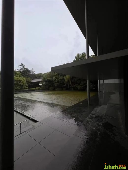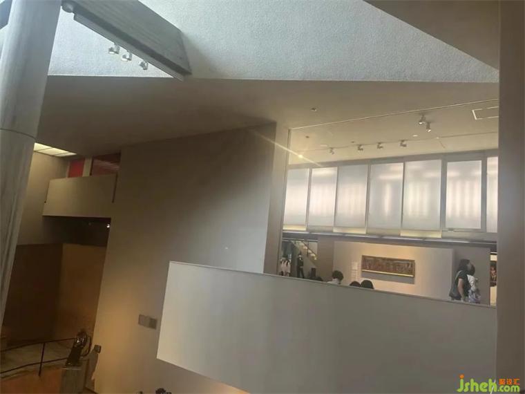 法隆寺寶物館位于東京上野公園內(nèi),由建筑師谷口吉生設(shè)計(jì)。建筑主要由三個(gè)體量連接而成,玻璃大廳的幕墻和采用鐵骨架支撐、細(xì)長(zhǎng)的豎向窗格是對(duì)傳統(tǒng)建筑中拉窗元素的現(xiàn)代化表達(dá)。建筑師在這里運(yùn)用極其通透的建筑外表皮和扎實(shí)的建筑內(nèi)核,創(chuàng)造出豐富的室內(nèi)外空間。