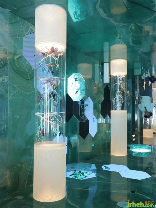 在快節(jié)奏的現(xiàn)代都市生活中,電梯廳花園如同一股清流,以光影的變幻莫測擁抱自然手作的純粹與匠心,綠玉石的溫潤、玻璃的通透與翩翩蝴蝶共同編織出一個超現(xiàn)實般的沉浸世界,大量鏡面的設(shè)計使人步入其中,即刻便感受到視覺與心靈的雙重震撼,仿佛穿越至另一維度。