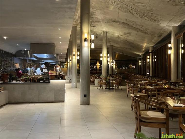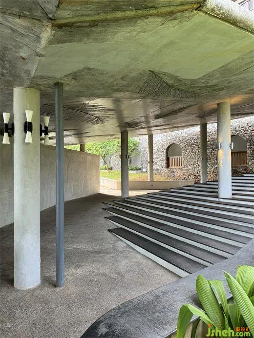 該酒店位于班托塔河于印度洋的入???,一塊轉(zhuǎn)角基地之上,一面面朝印度洋,一面面朝班托塔河。
