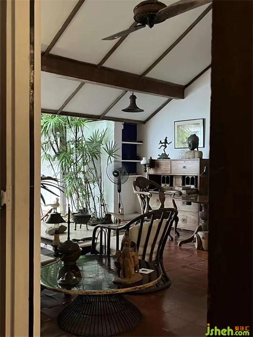 2.低成本建材運(yùn)用,所有巴瓦的作品采用的材料都極其普通、便宜,室內(nèi)幾乎沒有吊頂,墻面四白落地,地面是陶土磚、水泥地面或者木地板,沒有踢腳線。照明基本采用自然光和間接照明。裝修上極少采用現(xiàn)代材料,空間呈現(xiàn)出簡(jiǎn)樸、自然的松弛感。