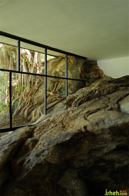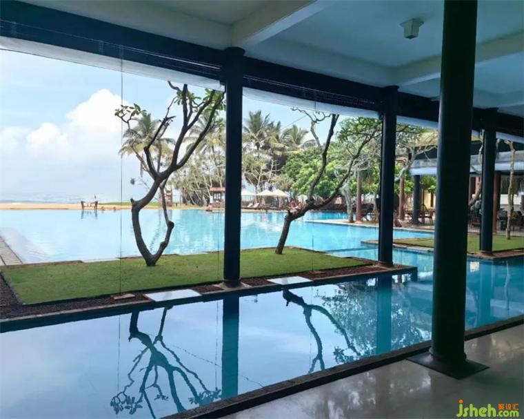 坎達拉瑪遺產(chǎn)酒店四面都是植被,建筑外觀被植被覆蓋,堪稱“消失的建筑”,巴瓦將建筑與環(huán)境融為一體的理念展現(xiàn)得淋漓盡致。酒店的客房部分很注重材質(zhì)和陳列,沒有造型和色彩,空間自然質(zhì)樸,溫馨放松。時而還有小猴子來陽臺玩?;?!整個酒店公共區(qū)域和走廊看不到一副裝飾畫,巴瓦認為周圍的巖石、森林、水等自然就是畫卷。