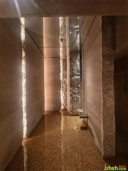 靜安區(qū)中興路699號,又一上海頂級豪宅坐落于此,售樓部大廳恢弘大氣,富麗堂皇,金色的花束好似瀑布一般在樓梯間流淌。踏上自動扶梯,我們來到了藝術(shù)畫廊一般的公共區(qū)。黑白交織的連廊設(shè)計,高級神秘,一件件藝術(shù)品置于兩側(cè)的壁龕中,暖黃色的燈光為設(shè)計披上金色的光暈。這是萬科傲舍打造的“一間美術(shù)館”會所,總共約2000平米,為業(yè)主帶來了藝術(shù)展覽、日咖夜酒、健身、社交、游泳、理療等多功能服務(wù)。每個空間,都代表上海生活方式的濃縮——文化與時尚,煙火氣與精致,活力與運動的交疊。