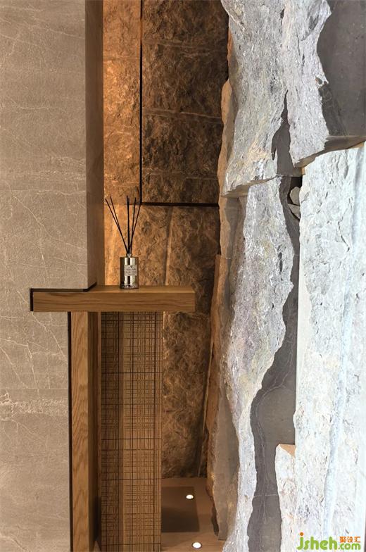 離開公共區(qū)我們走向樣板間,在入戶門的位置,設(shè)置了專屬于業(yè)主的鎮(zhèn)宅位,玻璃壁龕可放置業(yè)主私人藝術(shù)收藏。室內(nèi)約3.15米的層高讓整個空間顯得更加開闊大氣。三面采光的設(shè)計,使得室內(nèi)光線充足,擁有出眾的景觀和視野。在材質(zhì)方面,地面選用天然奢石-寶格麗蘭,十字拼接,西廚及壁爐選用經(jīng)典法式奢石-山水白;在設(shè)計手法上,配置石材踢腳、墻面線條與疊級等西方古典語言,營造輕法風(fēng)情。