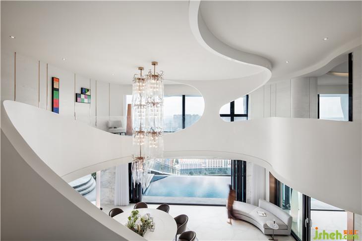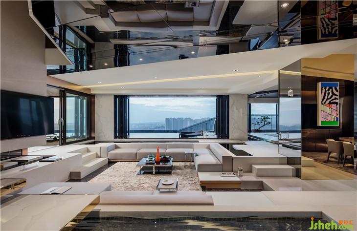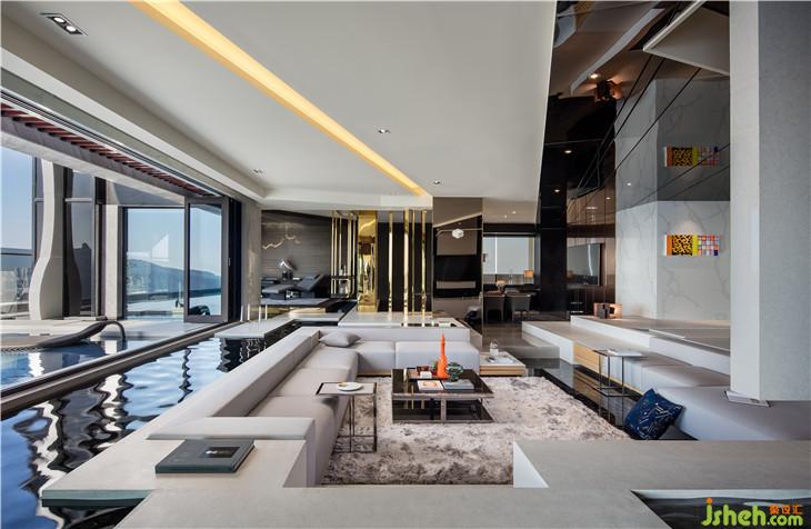 近來云水間的案例便是這些理念的真實(shí)的寫照,他說道:“我們其實(shí)就是在創(chuàng)造情境創(chuàng)造生活方式,我們就不只是形式。”當(dāng)今有很多設(shè)計(jì)從業(yè)者認(rèn)為加入一些圈狀或線條類的就是有設(shè)計(jì),而真正的室內(nèi)設(shè)計(jì)師應(yīng)該要清晰的創(chuàng)造出情境。因此他以及設(shè)計(jì)團(tuán)隊(duì)從一開始的無邊際泳池,擴(kuò)大到客廳,再讓水漫到擴(kuò)大到整個(gè)空間,當(dāng)客戶進(jìn)入到這個(gè)客廳時(shí)你會(huì)覺得自己仿佛是一葉扁舟,徜徉在整個(gè)海洋中,整個(gè)氛圍就被很自然的展現(xiàn)出。