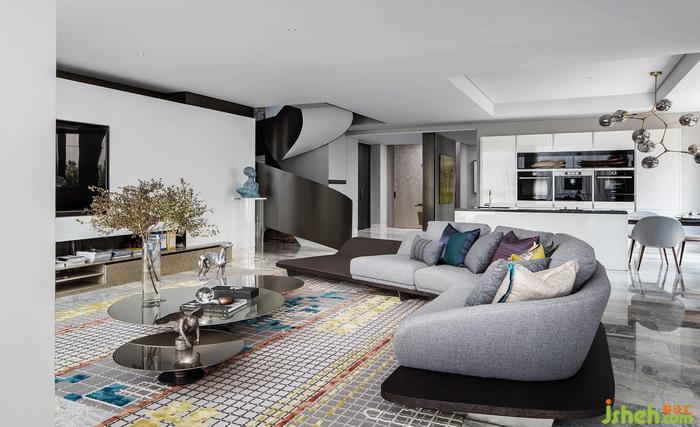 別墅裝修設(shè)計(jì)中客廳擺放的沙發(fā)出自意大利reflex品牌,高低錯(cuò)落,矮的地方有點(diǎn)像榻,很適合小朋友在此玩耍,也便于親子游戲和互動(dòng)。功能靈活劃分、喜愛的家居單品的引入,所有看似美而無用的部分都讓度日的每個(gè)閑暇有了值得期待的風(fēng)景。