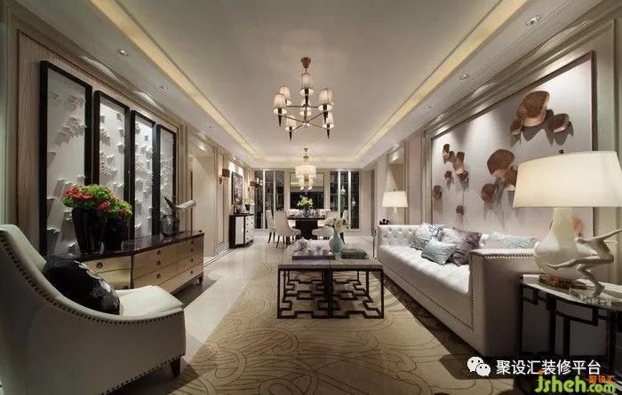 為了讓空間量體就像一件雕塑品,從空間貫穿到家具,例如以線條雕琢的天花線板、大理石地板、墻垣,當(dāng)代經(jīng)典、線條簡潔的沙發(fā),直線傾泄宛如銀絲瀑布的水晶燈,精巧的多寶格開放式儲(chǔ)柜,直線拼花的藝術(shù)性地毯,而除了線條的鋪展之外,能讓這件空間雕塑散發(fā)光芒的還有材質(zhì)的講究、光線的經(jīng)營,。在此把家具也視為空間的延伸,讓彼此融合為一體,透過一些家具突顯藝術(shù)性,創(chuàng)造戲劇張力與視覺效果,讓空間更有生命力。