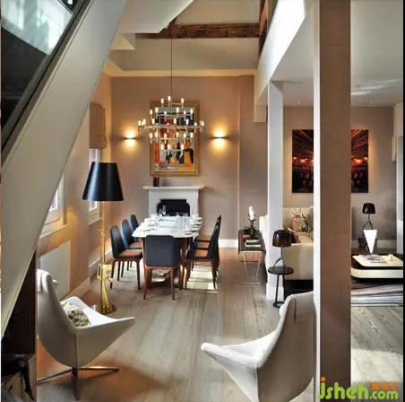 編輯點(diǎn)評(píng):這間頂樓公寓設(shè)計(jì)上不愧是“麻雀雖小,五臟俱全”,何以見(jiàn)得?除了中部大小沙發(fā)的搭配得以滿足待客需求,用餐區(qū)里,餐桌也是為多人用餐準(zhǔn)備的,可見(jiàn)這并不只是一間溫馨的小屋。燈飾上,大吊燈與壁燈也為用餐區(qū)營(yíng)造了舒適的氛圍。同時(shí),設(shè)計(jì)師也充分利用空間,在此處安置了休息椅,讓主人放后得以在此閑聊。將休息椅圍在此處,也是空間的軟隔斷。