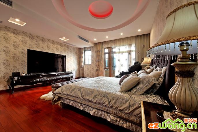 設(shè)計(jì)亮點(diǎn)在一層通往五層的旋轉(zhuǎn)樓梯,設(shè)計(jì)師獨(dú)具匠心,將原本空蕩的采光井預(yù)留空間充分利用,設(shè)計(jì)出極具豪氣的五層高的旋轉(zhuǎn)樓梯,加上LED射燈的點(diǎn)綴,極佳地營(yíng)造了品味空間。同時(shí),結(jié)合業(yè)主的需求,將新古典元素融入其中,整個(gè)客廳奢華大氣,色彩鮮明,頗具貴氣。主人房混搭了中式元素與新古典元素,柔美的紗簾配合微妙的燈光,把夜晚烘托得柔美曖昧。