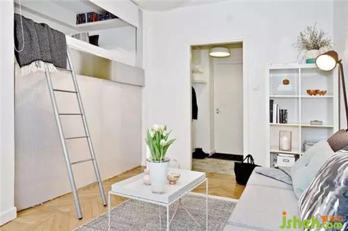 如果室內(nèi)設(shè)計(jì)師有設(shè)計(jì)巧思,在深圳裝修設(shè)計(jì)中像下圖的設(shè)計(jì)也很酷,直接把床橫在入門處的上方,電視get、書架get、梯子get、收納柜get,空間雖小,卻一應(yīng)俱全。