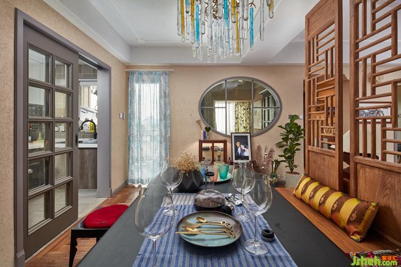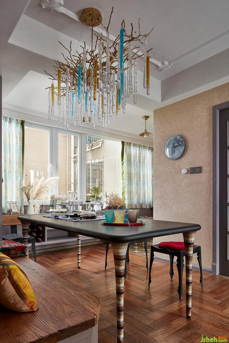 3、餐廳設(shè)計(jì)色彩搭配也要注重整體感。墻面可用中間色調(diào),天花板色調(diào)則淺,以增加穩(wěn)重感。在不同的時(shí)間、季節(jié)以及心理狀態(tài)下,人們對(duì)色彩的感受會(huì)有不同的感覺(jué)。這時(shí),可利用燈光作為輔助手段來(lái)調(diào)節(jié)室內(nèi)色彩氣氛,以達(dá)到利于飲食和愉悅身心的目的。比如,燈具選用白熾燈,經(jīng)反光罩反射后以柔和的橙色光映照室內(nèi),形成橙黃色環(huán)境,能有效消除死氣沉沉的低落感。寒冷的冬夜,如選用燭光色彩的光源照明或橙色射燈,使光線集中在餐桌上,也會(huì)產(chǎn)生溫暖的感覺(jué)。