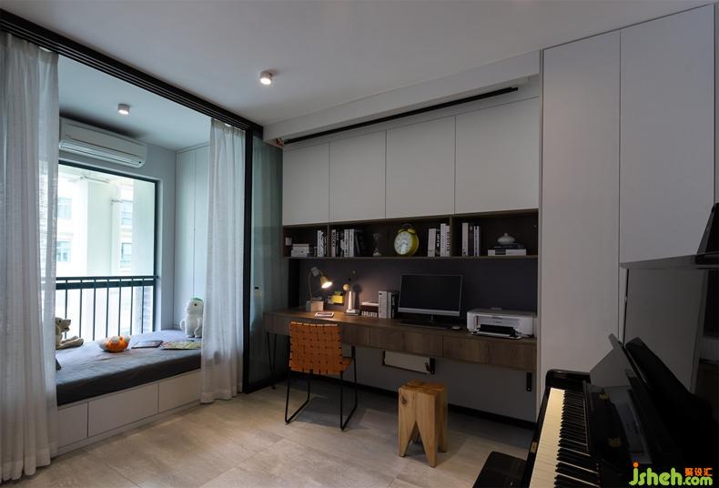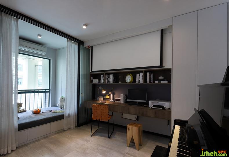 墻面與天花板往往處理成白色,避免小客廳的視覺壓抑,地面采用純天然木質(zhì)地板,美觀實用。將客廳延展至陽臺,擴(kuò)大小客廳的面積,于窗下設(shè)置臺板可增強(qiáng)實用性與休閑感。造型獨特的玻璃茶幾是小客廳的上佳之選,既活躍了居室氣氛,又避免打亂小客廳中原有的色彩平衡。