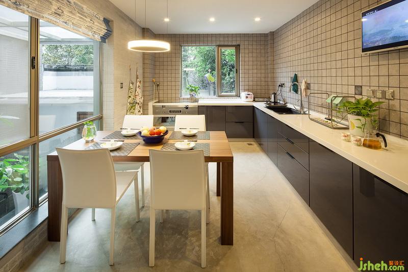 作品簡介:客廳使用爵士白大理石電視背景墻,金屬線條、地面拼花,整個空間以現(xiàn)代的材質(zhì),洋溢著中式的韻味,沙發(fā)背景墻選用冷色的壁畫墻布,讓人眼前一亮,木飾面又讓空間溫暖而有質(zhì)感。形黑色線框勾勒六角門,呼應了其他空間,圓形吊頂,象征著天圓地方,壁畫與金屬線條、木飾面相互交織,餐廳到廚房用灰鏡隔斷,顯得空間大,有層次,餐廳到廚房做了一個對稱的假門,隱藏了另一邊的廚房門,形成了一面完整的餐廳背景墻,餐廳旁邊的吧臺和西廚相結合,具有多功能性,既能休閑喝茶,又能進行簡單的西式料理,暖灰色的柜體,時尚又簡約,低奢。