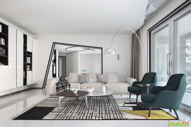 作品簡介:本案室內(nèi)設計師將兩套戶型打通合一,形成了超大、稀有的公共家庭空間,極大程度上滿足家庭成員的情感交流、休閑社交、親子教育等功能化訴求——除卻常規(guī)的客廳、餐廳、家庭廳,增設了紅酒休閑區(qū)、兒童游戲區(qū)、超大露臺等,這在城市平層住宅中已屬稀有。 整個空間極富包容性,讓3個不同學齡段的孩子都能在家中找到自己的專屬地帶,室內(nèi)設計師更設置了超大公共儲藏區(qū)域,足以容納所有居家儲藏。整個空間兩大部分的微妙交界處,靈感來源于貝聿銘設計的香港中銀大廈,線條的解構與圖形重組形成別具一格的現(xiàn)代幾何造型。