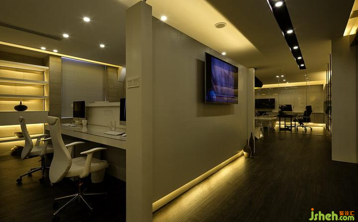 作品簡介:私人辦公空間格局并沒有過多的復(fù)雜,透明玻璃隔斷的設(shè)計使其劃分了空間私密感之余,又不會太過的規(guī)定界限。