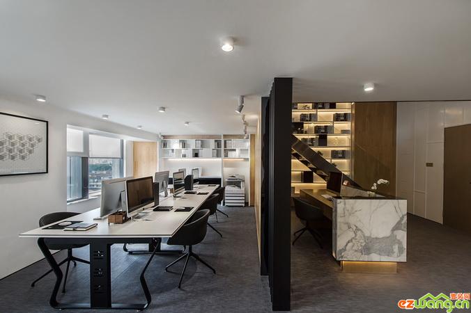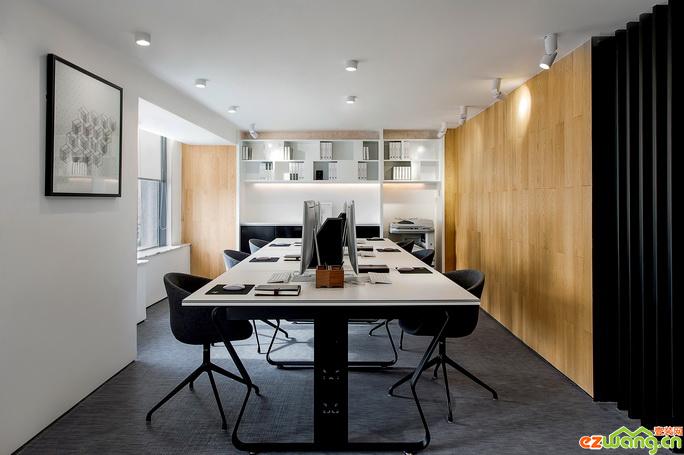 作品簡介:「黑鋼」的運(yùn)用貫穿著整個(gè)設(shè)計(jì)的主脈,金屬的色調(diào)和質(zhì)感,不僅是為了契合「金融」的行業(yè)屬性,更讓氛圍從電梯廳和入口處開始,就建立了酷而神秘的開場儀式。整個(gè)2000平米的室內(nèi)空間,沒有多余的色彩,只有一抹淡淡的「冷、凈」色調(diào),散發(fā)著禪意和哲學(xué),讓人一走進(jìn),就不自覺地?fù)崞絻?nèi)心的浮躁,金屬、石材的冷調(diào)與木質(zhì)的溫潤調(diào)合得恰恰好。墻面并無過多的造型,簡單幾筆秩序的線條,已能展現(xiàn)出沉靜的形體力量。