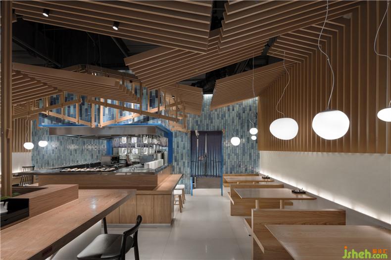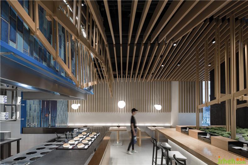 作品簡介:魯奇設(shè)計(jì)團(tuán)隊(duì)在杭州所打造的“麺屋武藏”來自日本東京,作為日本拉麵界的殿堂級名店,此次落地杭州,設(shè)計(jì)者用簡約的線條去演繹日本建築層迭的屋簷,再將空間重新劃分與組合,試圖將日本日落時(shí)分掛滿燈籠的老街帶入這間麵屋之中。