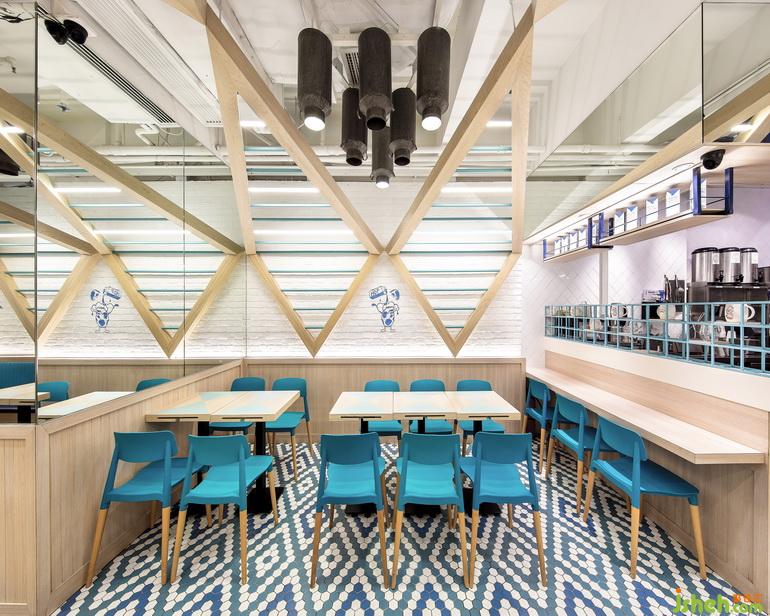 作品簡(jiǎn)介:門面設(shè)計(jì)以類似的木材為主題,外賣窗口則以金屬郵箱為點(diǎn)綴。室內(nèi)設(shè)計(jì)師在餐廳的盡頭擺放以清鏡飾面的儲(chǔ)存柜,一來(lái)可避免觀感凌亂,二來(lái)又可給予空間無(wú)限延伸的感覺(jué)。
