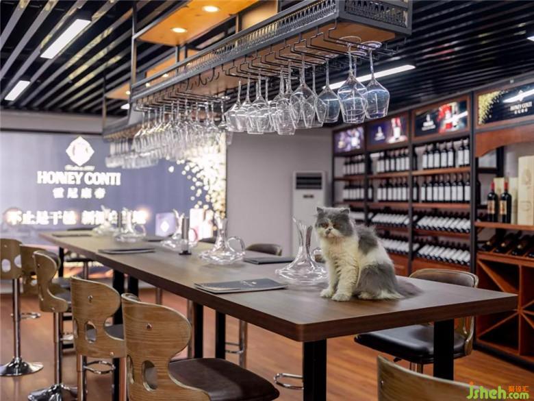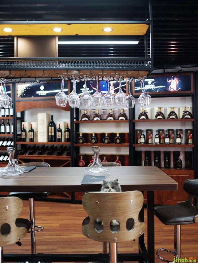 一層作為售酒區(qū)是以貨架陳列形式展示的,通往二層的樓梯與一層相互獨(dú)立,洗手間與儲(chǔ)物間巧妙地利用了樓梯下的空間,避免了空間浪費(fèi)以及動(dòng)線交叉重疊