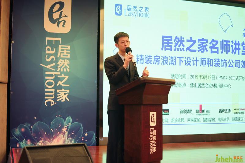 新加坡BRANDER設(shè)計顧問咨詢(佛山)有限公司左君作為本次活動的主持人,圍繞本次活動主題“精裝房浪潮下設(shè)計師和裝飾公司如何面對?”作開場發(fā)言。他表明,這幾年時間,各大知名地產(chǎn)商已經(jīng)完成了精裝修設(shè)計產(chǎn)品線的研發(fā)和迭代,大型房企的全裝修比例甚至已經(jīng)達到了80%以上。隨之而來的,各位設(shè)計師也應(yīng)當(dāng)需要思考,在這種趨勢的背后,身為家裝設(shè)計師的我們?該如何去應(yīng)對?