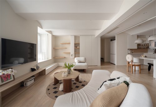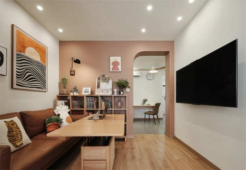 利用曲線+原木,38㎡小戶型爆改兩